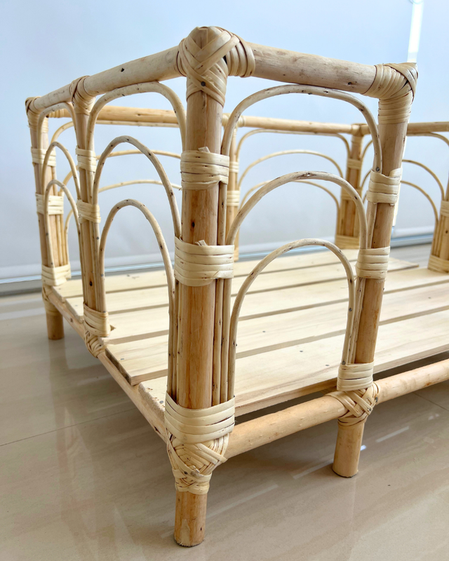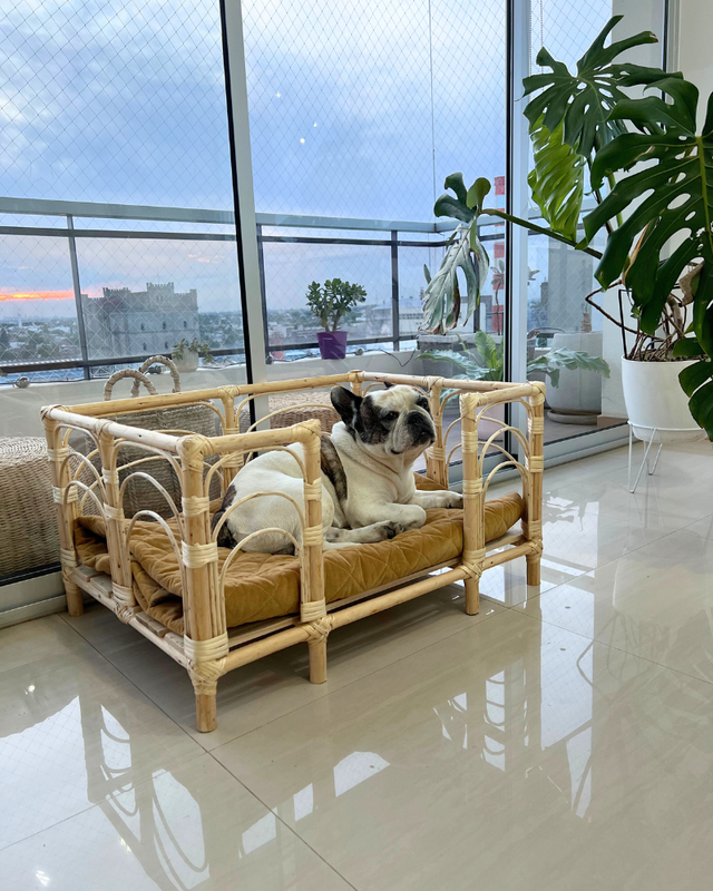 · Son únicas! Cucha artesanal tejida a mano. . Estructura de palo torneado y mimbre blanco. · Base de tirantes de madera para garantizar durabilidad. . Super resistente. · Fácil limpieza para simplificar el mantenimiento diario. . Aislamiento garantizado! Sobre patas de 1lcm para protegerlos del frio, calor y humedad del piso! . La experiencia sillon que a tu perro tanto le gusta!
