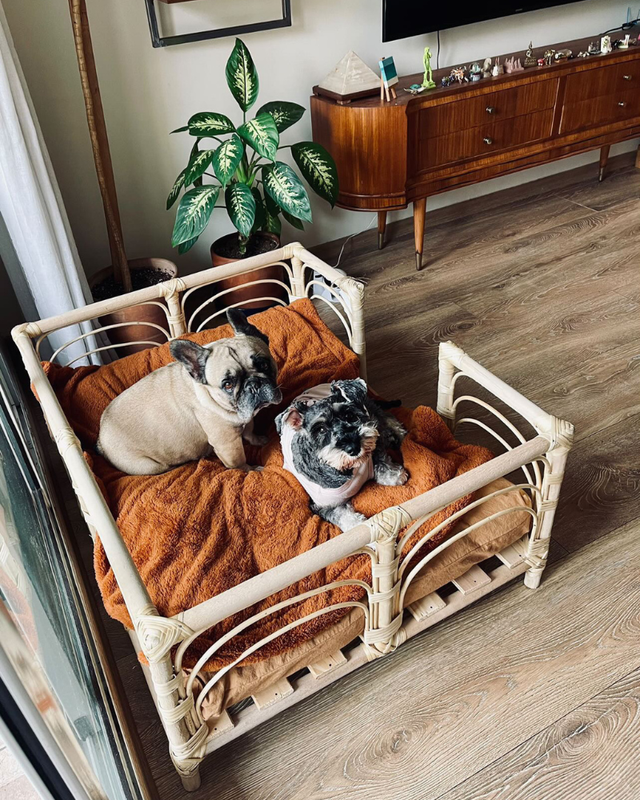 · Son únicas! Cucha artesanal tejida a mano. . Estructura de palo torneado y mimbre blanco. · Base de tirantes de madera para garantizar durabilidad. . Super resistente. · Fácil limpieza para simplificar el mantenimiento diario. . Aislamiento garantizado! Sobre patas de 1lcm para protegerlos del frio, calor y humedad del piso! . La experiencia sillon que a tu perro tanto le gusta
