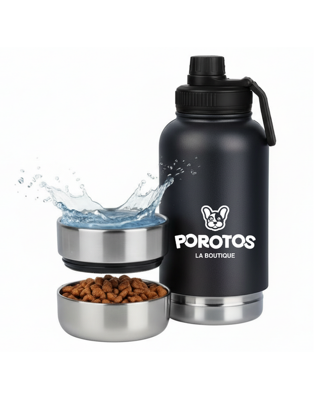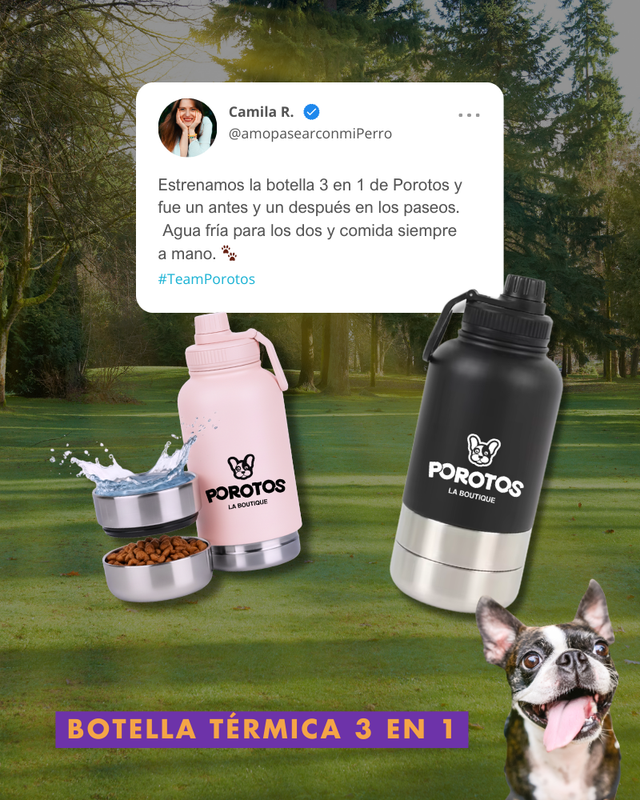 Esta botella de agua para vos y tu perro esta hecha de acero inoxidable y tiene 3 funciones!