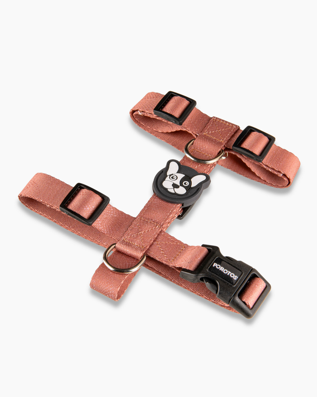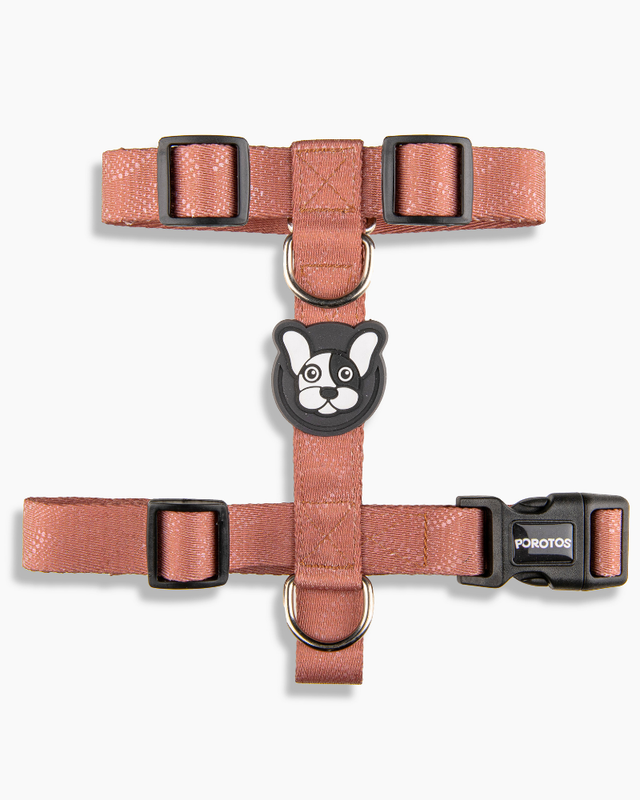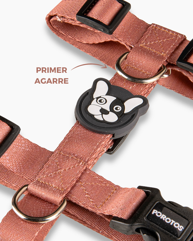 . Disenado en formato H, para que el perro no pueda sacarselo sólo y para que pueda pasear con sus articulaciones liberadas. · Cinta de poliester estampada de alta resistencia/tenacidad. . Hebilla curva de acetal que se adapta perfectamente al cuerpo y con seguridad de 4 puntos de cierre avalada por normas ISO. . Goma Doble protectora de costuras para mayor resistencia y detalle estético. · Medialuna con soldadura reforzada. · Regulable según tabla de talles para ajustar las cintas perfectamente al cuerpo.