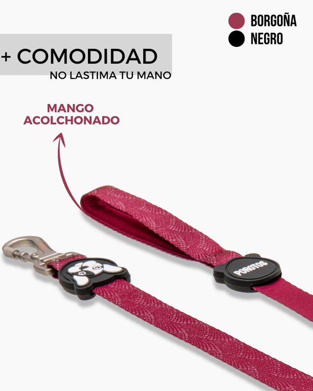 La cinta doble reforzada de alta tenacidad y su mosqueton con traba de seguridad en la apertura, son la combinacion perfecta de comodidad y seguridad para vos y tu perro.