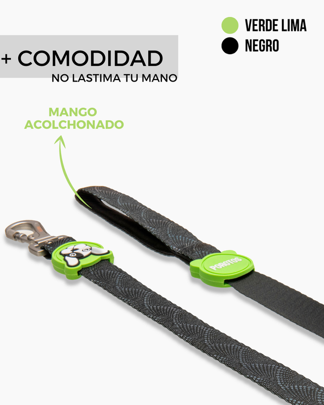 La cinta doble reforzada de alta tenacidad y su mosqueton con traba de seguridad en la apertura, son la combinacion perfecta de comodidad y seguridad para vos y tu perro.
